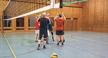 Dann geht es in bekannte Richtung, zum Volleyball-Spiel. Wir Diessenhofer haben aber arg Probleme, da die Halle gefühlt halb so hoch wie unsere Heimhalle ist. Noch und noch streifen unsere Bälle die Decke und produzieren damit Fehler!