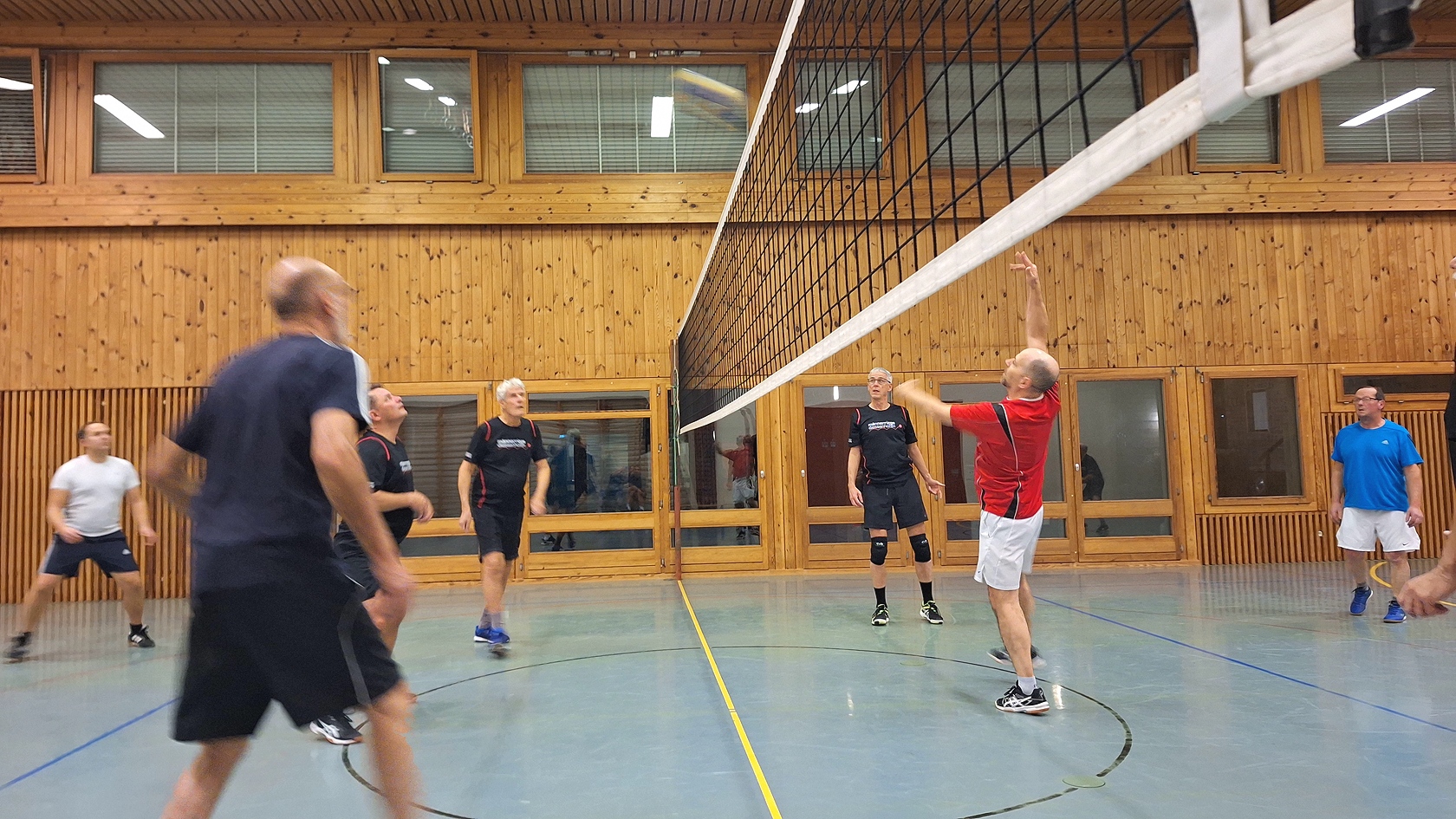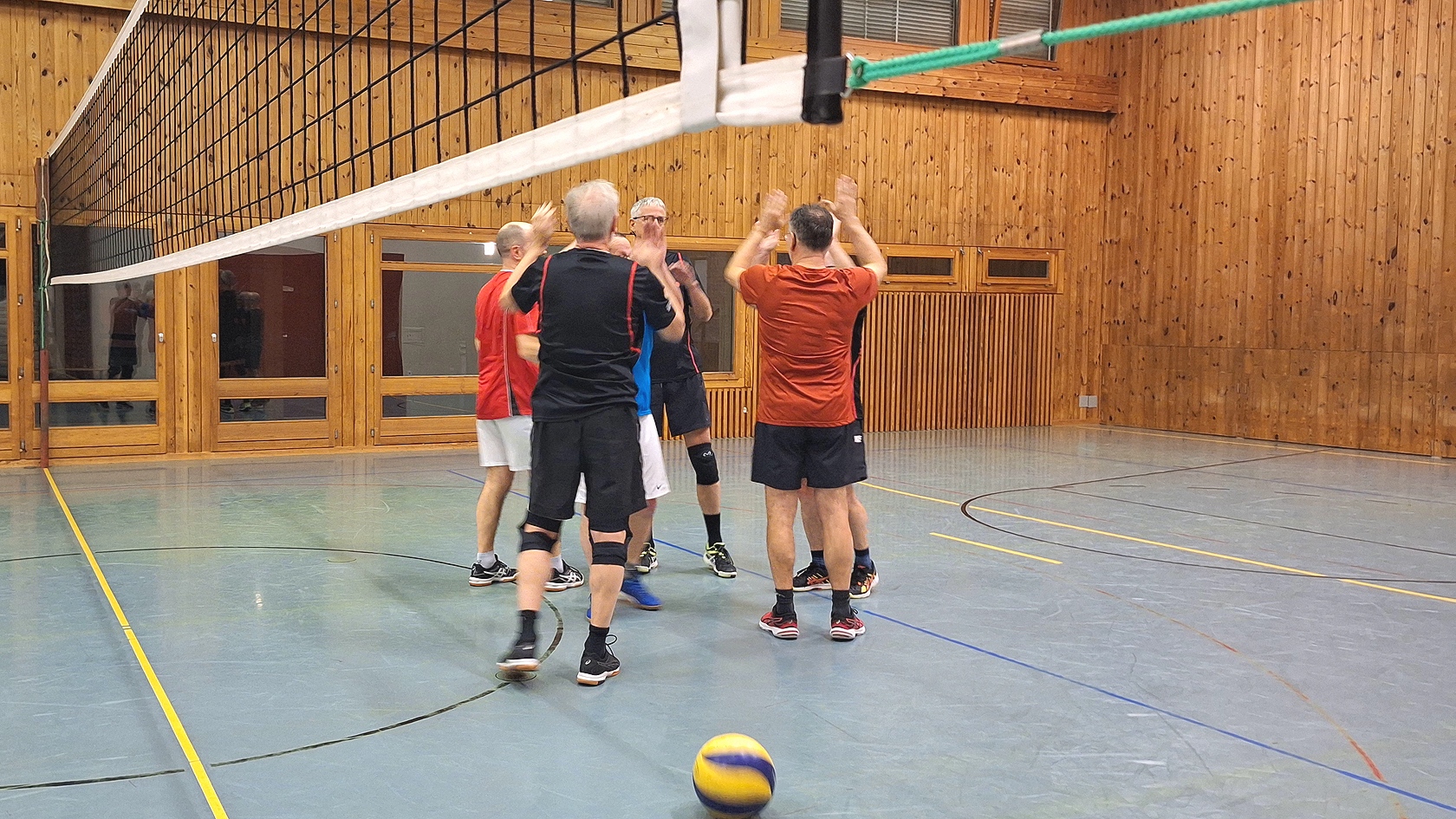 Mit acht Mann melden wir uns am 27.Nov.2025 punkt 20:00 Uhr bei den 6 Nüüferer Kameraden zum Ballaustausch übers Volleyball-Netz. Infolge der krassen Ungleichheit in der Spielqualität der beiden Mannschaften mischen wir schon ab dem zweiten Satz! Deshalb ist es nicht feststellbar, ob wir vielleicht auch mal einen Satz gewonnen hätten, was allerdings unwahrscheinlich ist, weil sich Beat beim Einspielen an der Hand verletzt hat und bald einmal die Dusche aufsucht.