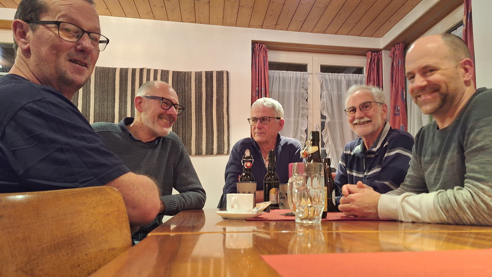 Wir trafen uns um 20 Uhr, verhandelten über die statutarischen und die ausserordentlichen Traktanden. Zum Beispiel haben wir beschlossen, den Namen "Männerriege Diessenhofen" beizubehalten und auch dass wir im 2026 den Kohlfirst-Wettkampf unter der Gesamtleitung von Sepp durchführen werden. Nach dem Ende der Versammlung zelebrierten wir den gemütlichen Teil bei Pizzen, Most oder Bier.